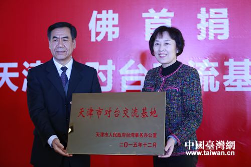 中國臺灣網12月30日天津訊 12月30日上午,佛首捐贈暨天津市對臺交流基地授牌儀式在天津市武清區博物館舉行。中國國民黨中央評議委員會主席團主席張榮恭,中國國民黨中央評議委員李建榮、葉景成,佛首捐贈人、臺商吳尚鷹等臺灣嘉賓出席此次活動。