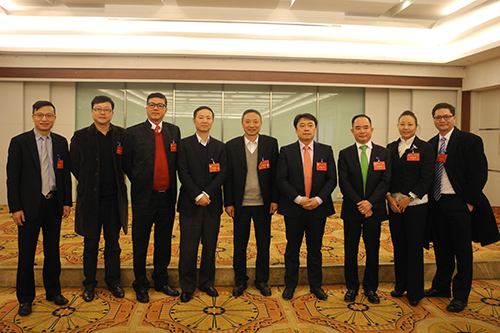 四川省臺辦主任、省政協港澳臺僑和外事委員會主任周敏謙(左五)和省委統戰部常務副部長聶文強(左四)看望列席會議的僑胞、臺胞代表。