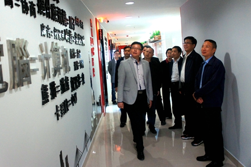 四川省臺辦主任周敏謙(右一)在青年創業園調研。