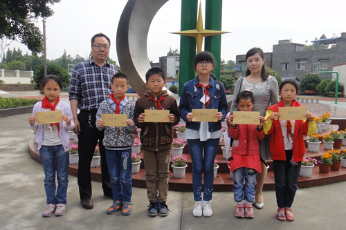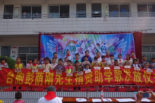 眉山市臺辦共計為盤鰲鄉中心小學、保勝小學、慈航鎮中心小學等學校的50名受助學生發放2.5萬元助學金,勉勵受資助的孩子們牢記彭蔭剛先生及社會各界的關心的幫助,常懷感恩之心。
