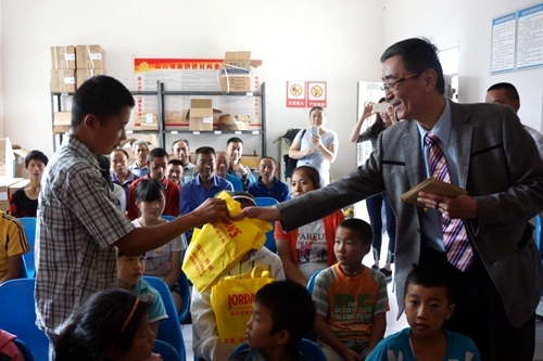 張慶麟先生向受資助學(xué)生贈(zèng)送助學(xué)金和學(xué)習(xí)用品