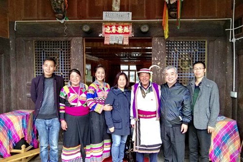 林文雄(右二)一行看望與白馬藏族老人旭仕修(右三)一家合影