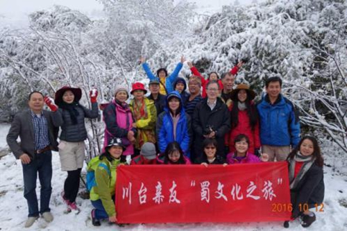 “川臺親友蜀文化之旅”全體成員在九寨溝合影留念