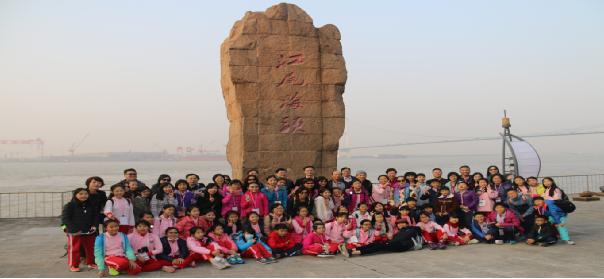 江尾海頭,金橋飛架,參訪首站是位于長江之濱的江陰鵝鼻嘴公園。新北大豐小學的師生及家長代表們飛躍海峽,結緣揚子江畔。