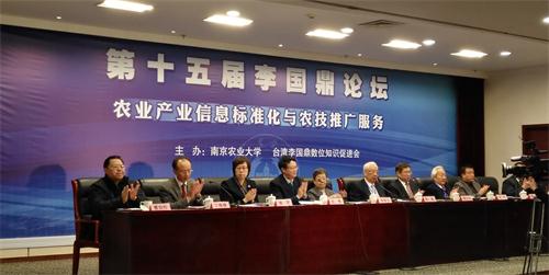 中國臺灣網12月27日南京訊 26日,由南京農業大學和臺灣李國鼎數位知識促進會共同主辦的“2016年第十五屆李國鼎論壇”在南京農業大學舉辦。本屆論壇主題為“兩岸合作推動農業產業訊息標準化與大學農技推廣服務研討”,旨在推動兩岸農業產業標準化及產業合作。原國家科技部部長朱麗蘭、南京農業大學黨委書記左惟、南京市臺辦主任曹勁松,臺灣李國鼎數字知識促進會理事長陳棠、秘書長李偉等相關領導及嘉賓出席了論壇開幕式等相關活動。