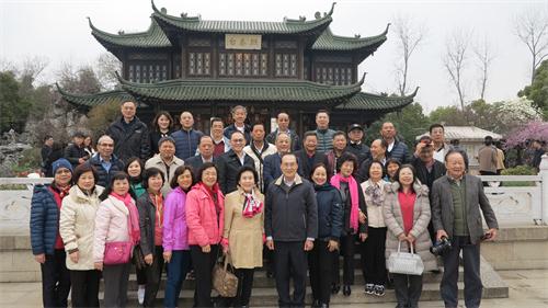 圖為第四屆“海外臺商江蘇行”參訪團在揚州瘦西湖熙春臺合影。