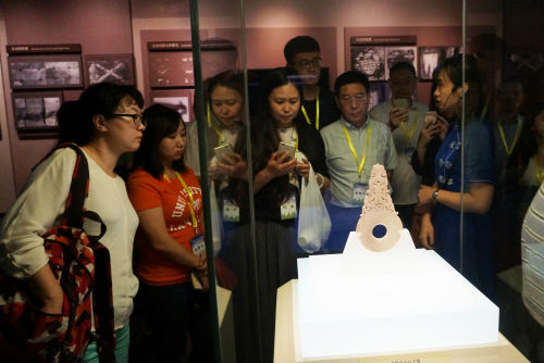 在博物館里,臺胞青年們參觀了中國首次發(fā)現(xiàn)、規(guī)格最高、最完整的西漢中山靖王劉勝的金縷玉衣,領(lǐng)略了由臺灣星云大師促成首、身合璧后的北齊釋迦牟尼石像,目睹了在地圖史上比外國最早的羅馬帝國時代地圖還要早600年的錯金銀銅板兆域圖……博物館的豐富文化遺產(chǎn)讓學(xué)員們收獲頗多。