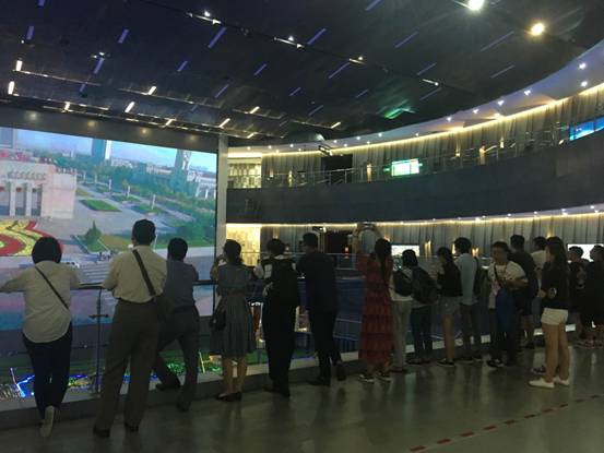 在市展覽館,同學們通過館內生態數碼墻、數字沙盤、弧幕影院等現代光電技術手段,了解了東營的城市發展史,感受到了東營的城市魅力。