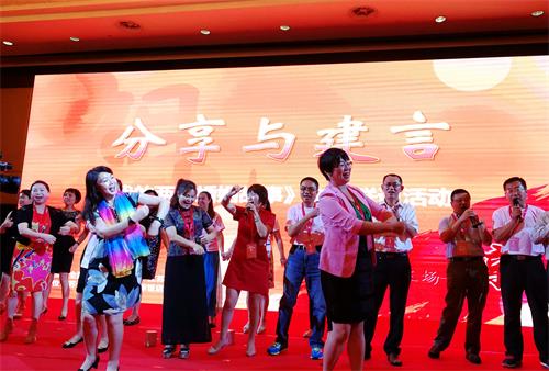 活動還開設了微信互動環節,遴選出了十個“幸福故事”和十句“幸福箴言”,進行了現場分享!拔易鲞^最不后悔的決定就是嫁給你”“有你才有了完整的家”“愛是無言的,我懂你”“幸福很簡單,過馬路有人牽著就好”“你帶我到天涯海角,我帶全家回祖國溫暖的懷抱”……一句句愛的表白,讓現場的空氣里都彌漫著愛的氣息。最后,在《我們都是一家人》的歌聲中,大家手牽著手,載歌載舞,共同表達著對兩岸有情人終成眷屬、兩岸永遠是一家人的美好祝愿。