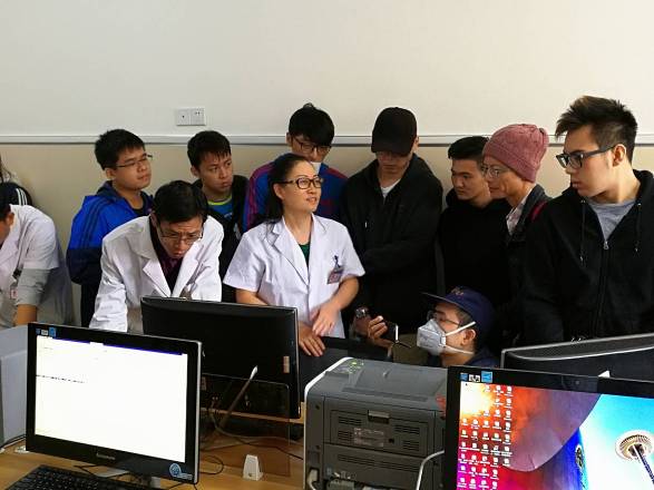 (圖為同學們觀看正大邵陽骨傷科醫院的宣傳視頻)
