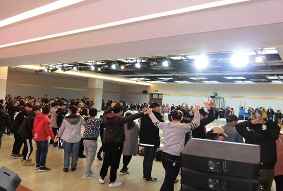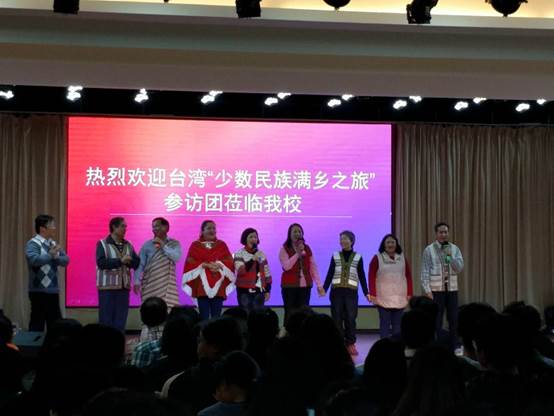 臺(tái)灣少數(shù)民族代表和大連民族大學(xué)師生們手拉手,同唱“我們都是一家人”