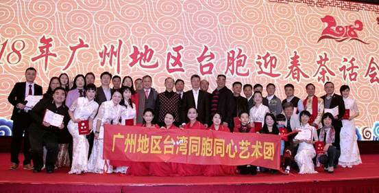 中國臺灣網1月19日廣州訊 為進一步深化穗臺文化交流,弘揚中華文化,促進心靈契合,打造統一戰線“兩岸同心”的文化品牌,經過精心籌備,廣州臺胞同心藝術團在2018年1月15日廣州地區臺胞迎春茶話會上正式成立并進行首場演出,為在穗臺胞提供了一個聯誼交流、豐富生活的平臺。