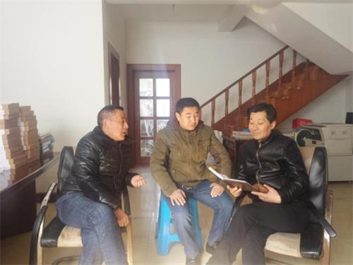 圖為高郵市臺辦工作人員和金貴發(fā)大陸親屬核實(shí)相關(guān)情況。