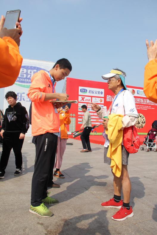 選手劉哲宏說:“馬拉松就是‘路遙知馬力’的一項(xiàng)運(yùn)動(dòng),不是在拼誰跑得快,而是在拼誰能堅(jiān)持下來!”78歲高齡的跑友林豐盛的信條是“人生七十才開始”。為了挑戰(zhàn)自己的承受力和極限,林豐盛從70歲開始跑全馬,鄭開馬拉松是他的第76場比賽。在跑至終點(diǎn)時(shí)收獲了現(xiàn)場觀眾熱烈的掌聲,他激動(dòng)地說:“我終于跑完了,又一次堅(jiān)持了下來,我很開心!”