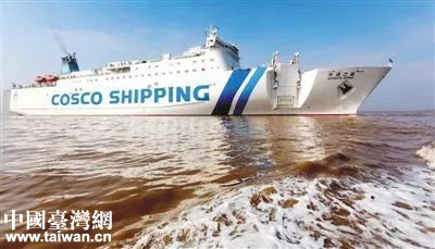 圖為臺胞搭乘的“中遠之星”輪船駛入臺州大麥嶼港。(圖片來源:臺州市臺辦)