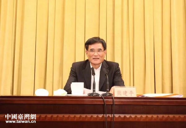 圖為省委常委熊建平出席會議并講話。(圖片來源:浙江省臺辦)