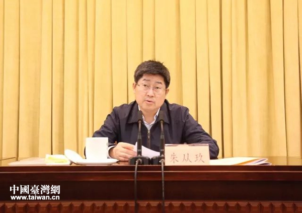 圖為副省長朱從玖主持會議。(圖片來源:浙江省臺辦)