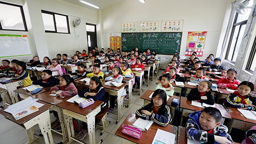 位于綿陽市安州區(qū)秀水鎮(zhèn)第一中心小學的同學們在新教室迎來新學期。(四川省臺辦供圖)