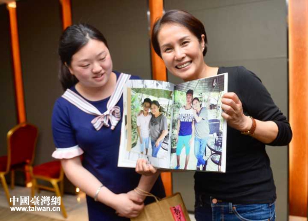 送禮物環(huán)節(jié),長得白白胖胖的謝蘭,將一本濃縮著回憶的相冊送到高金素梅的手中。想要永遠(yuǎn)記著每一次相聚場面,她將這十年來聚會所拍的合影,打印并裝訂成冊。里面,她最愛的是那張去臺灣參加兩岸青少年交流活動時大家的合影。