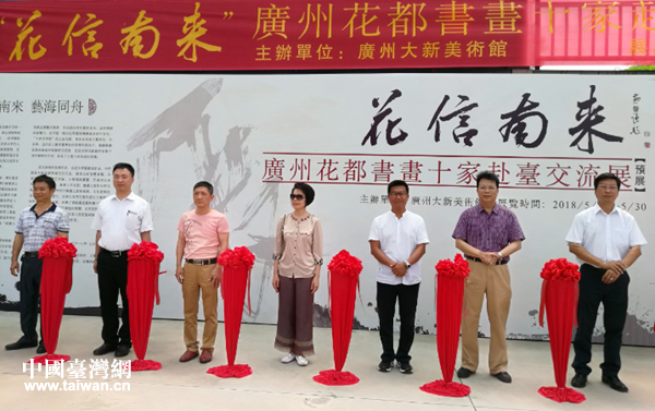 中國臺灣網5月23日廣州訊 日前,“花信南來”廣州市花都區書畫家赴臺交流展預展開幕式在廣州大新美術館順利舉行,大新文創園景區管理有限公司執行長李明宗、總經理蘇仁志,杰宏泰首飾有限公司董事長連捷興、石頭記珠寶有限公司總經理、御盛國際馬術度假區董事長許巽卿等臺資企業相關負責人參加開幕儀式并剪彩。赴臺預展開幕儀式由花都區書法家協會主席黃國強主持,現場吸引眾多書畫家及藝術愛好者前來參觀。