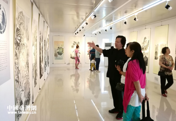 圖為藝術家為觀眾講解作品。(圖片來源:廣州市花都區臺辦)