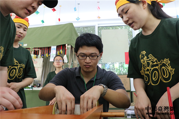 學(xué)習(xí)制作艾條。(中國(guó)臺(tái)灣網(wǎng) 郜利敏 攝)