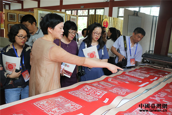 兩岸媒體走進鄂州民間工藝美術館,參觀雕花剪紙、麥稈畫等民間工藝品,了解鄂州市傳統文化。(中國臺灣網 郜利敏 攝)