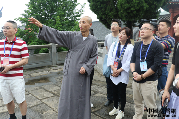 兩岸媒體記者聆聽法師講述四祖寺的禪宗淵源。(中國臺灣網 郜利敏 攝)