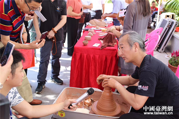 開幕第一天,五湖四海的賓客紛至沓來,共享此次陶藝大餐。在技藝展區30號展位,來自臺灣的3位陶藝家初陳勇、連美惠、李文廣現場展示,將坭興陶土和花蓮陶土融合一起,拉坯出兩地情感交融的陶藝品,吸引大批觀眾,各路傳媒爭相采訪報道。連美惠也特地將20多件陶器帶來參加第一屆欽州坭興陶文化藝術節,得到當地陶藝專家的贊賞!斑記得《你儂我儂》這首歌嗎?‘你儂我儂,忒煞情多,情多處熱如火……從今以后我可以說,你泥中有我,我泥中有你!褪钦f‘兩岸一家親’,兩岸的血脈是永遠斷不了的!边B美惠反復強調。