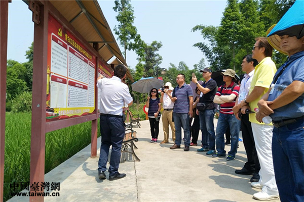 青白江白馬村聽取鄉村發展治理情況介紹。(圖片來源:成都市臺辦)