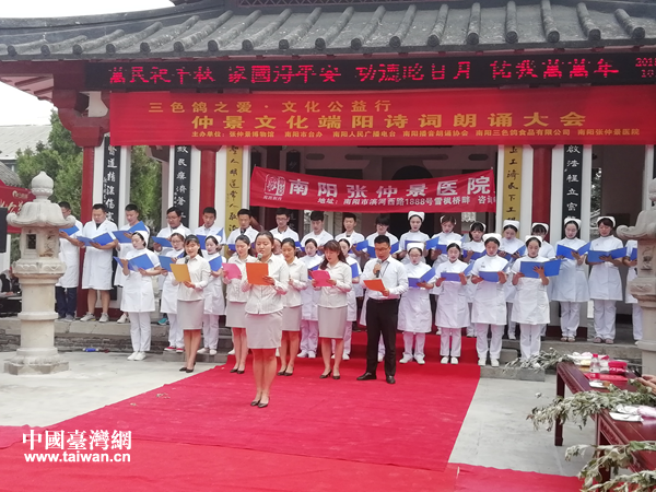 中國臺灣網6月19日南陽訊 6月14日,仲景文化端陽詩詞朗誦大會在河南省南陽市醫圣祠舉辦,南陽市臺辦、南陽市臺商界、南陽博物館界、播音朗誦界、書畫界等知名人士和詩詞朗誦愛好者共200余人參加了活動。