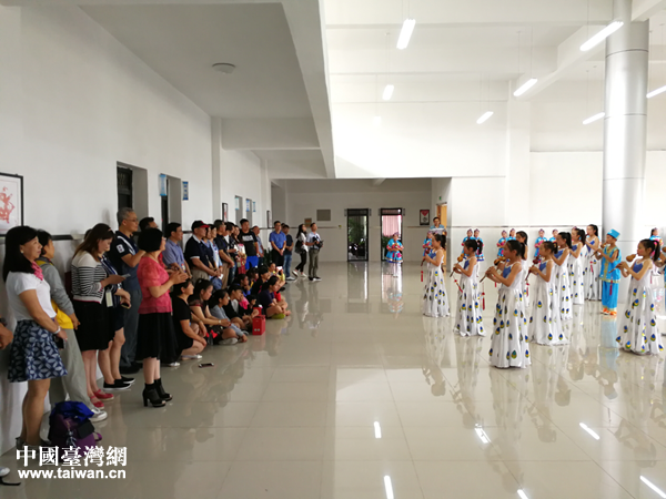臺(tái)東縣教育代表團(tuán)一行觀看學(xué)生表演。(圖片來源:宣城市臺(tái)辦)