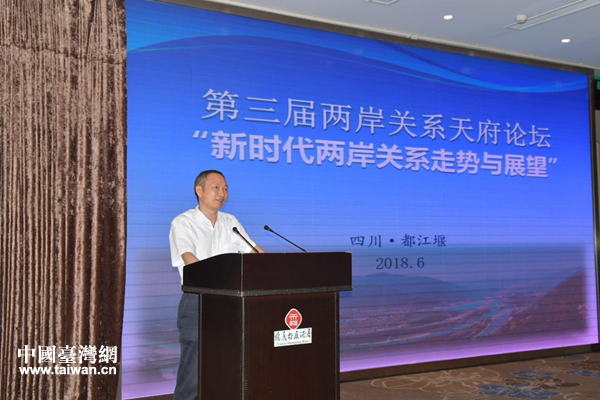 中國臺灣網6月25日成都訊 2018年6月23日至24日,以“新時代兩岸關系走勢與展望”為主題的第三屆兩岸關系天府論壇在四川成都都江堰市召開。海峽兩岸60余名知名學者圍繞論壇主題和“涉臺外部環境變化與兩岸關系走勢”、“民族復興前景下臺灣社會治理及民意走向”和“兩岸經濟社會交流合作的前景與作為”等議題展開了熱烈討論交流,為新形勢下推進兩岸關系融合發展、增進兩岸民眾福祉凝心聚力、獻計獻策。