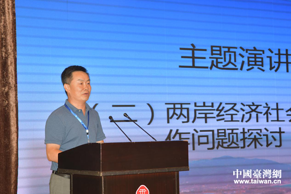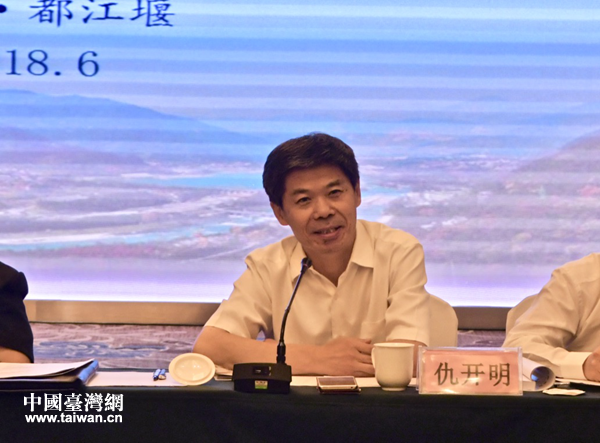 四川省臺辦主任周敏謙介紹川臺交流合作情況。(圖片來源:四川省臺辦)