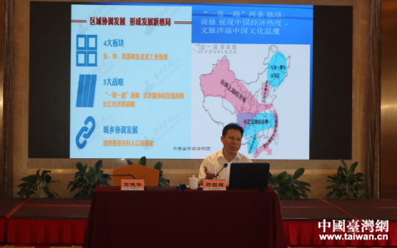 惠州市委講師團團長邱國耀為學員授課。(圖片來源:廣東省臺辦)