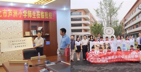 在泰期間,參訪團先后參觀了泰州第一外國語學校和寺巷中心小學。在泰外,新北市蘆洲小學的小朋友們參觀了校園,走進報告廳、教學樓、塑膠操場、國際部的閱覽室,感受泰外學生的學習生活環境和校園文化建設氛圍。在寺巷中心小學,雙方開展了聯誼活動。雙方校領導互贈了禮物,參訪師生與學!昂脱拧睈坌闹驹笀F的師生聆聽了市文化館老師的書法講座,觀看了六年級學生畢業典禮。最后,參訪學生與學校和雅社團跳繩隊學生代表進行了中國傳統體育項目——跳繩運動交流展示。寺巷中心小學跳繩隊個人花樣跳繩別具特色,而素有“全島第一”美稱的蘆洲小學的學生帶來的花樣長繩表演同樣精彩,讓人驚嘆不已。活動結束后,兩所學校的師生代表互贈禮物,共同合影,留下了美好瞬間。