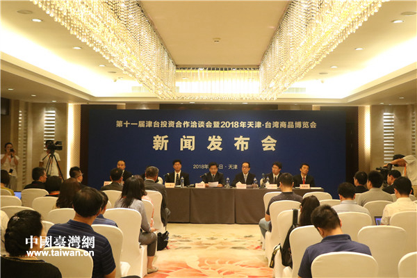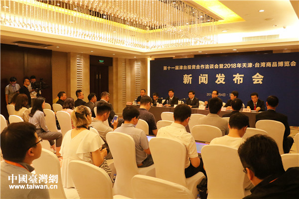 第十一屆津臺投資合作洽談會暨2018年天津·臺灣商品博覽會新聞發布會現場。(中國臺灣網 趙苗青 攝)