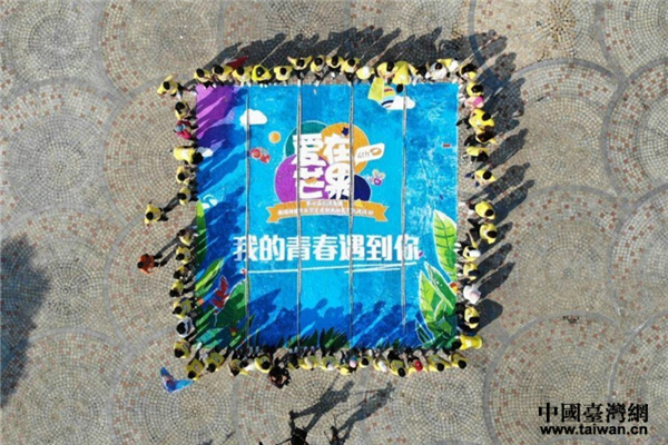 60名師生交上共同完成的繪畫作品,現場高喊口號“我的青春遇見你”。(圖片來源;湖南省臺辦 金鷹紀實 攝)