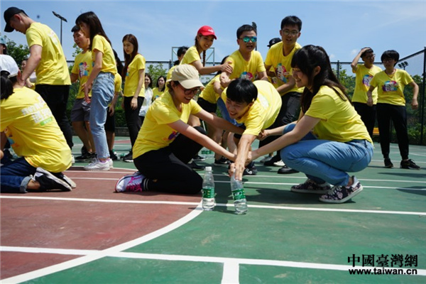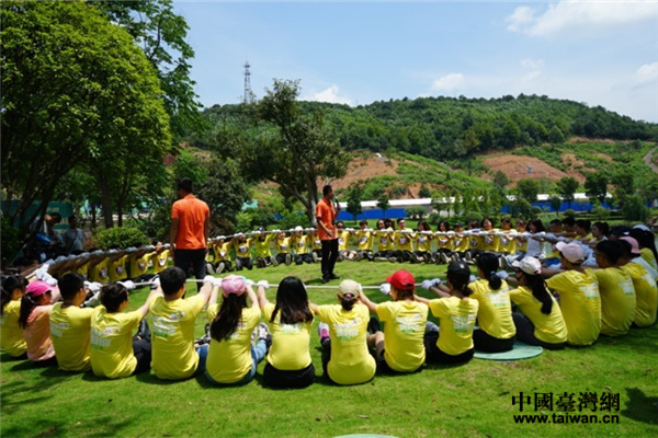中國臺灣網7月5日長沙訊 7月的驕陽跳躍著青春般熱情的舞步。7月4日上午,來自臺北大學、臺灣大學、世新大學等22所臺灣高校的50名大學生和10位來自湖南廣電的老師進行一次別開生面的戶外拓展訓練,讓實習生彼此互相了解,建立團結意識和集體觀念,展示青年學生們的朝氣和活力。