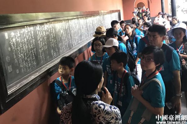 武侯祠《出師表》前聽講解。(圖片來源:成都市臺辦)