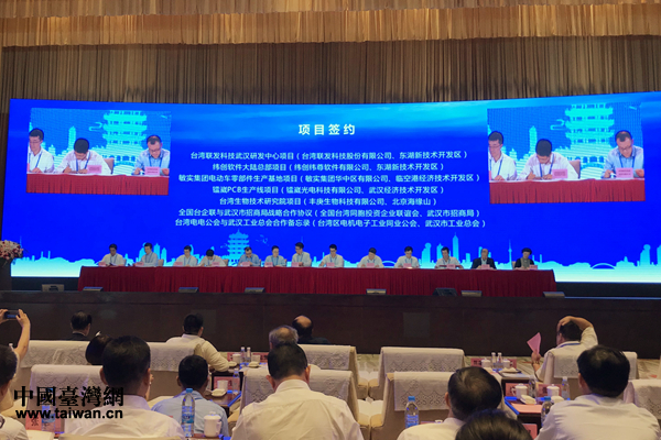論壇現(xiàn)場(chǎng),臺(tái)灣聯(lián)發(fā)科技武漢研發(fā)中心項(xiàng)目、緯創(chuàng)軟件大陸總部項(xiàng)目、敏實(shí)集團(tuán)電動(dòng)車零部件生產(chǎn)基地項(xiàng)目、鐳崴PCB生產(chǎn)線項(xiàng)目、臺(tái)灣生物技術(shù)研究院項(xiàng)目等7項(xiàng)合作成功簽約。