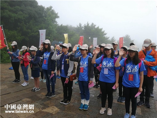 臺灣學子登上大觀峰,在泰山見證下宣誓成人。(圖片來源:泰安市臺辦)