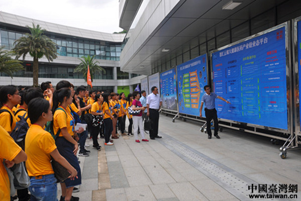 當天,近百名臺灣大學生走進貴州·臺灣大健康產業(云錦)示范基地、貴州苗醫藥博物館、大健康展示中心,詳細了解基地產業結構及發展狀況。參觀中,大學生們不時地向講解人員提問,或用筆記錄,或用手機拍照記錄,對我區大健康產業以及古老的苗醫藥文化充滿了好奇與求知。