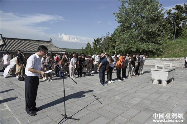 來自寶島臺灣的師生在安徽省劉銘傳墓園舉行紀念活動。(圖片來源:北京臺聯)