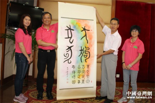 參訪團贈送紀念品。(圖片來源:河源市臺辦)