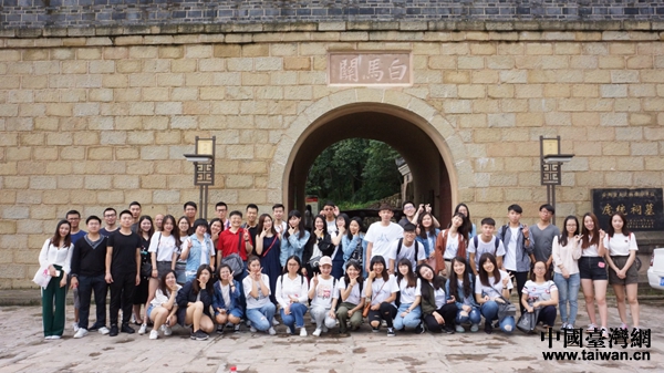 川臺(tái)學(xué)子在“三國(guó)秘境”白馬關(guān)合影留念。(圖片來(lái)源:四川省臺(tái)辦)