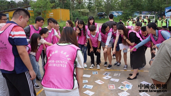在隊(duì)名、隊(duì)旗設(shè)計(jì)環(huán)節(jié),兩隊(duì)心有靈犀,都借助“白馬關(guān)”寓意,分別取名“炭燒河馬”和“飛天白馬”。拓展項(xiàng)目由“急速60”“生命年輪”“鼓動(dòng)人心”和真人CS實(shí)戰(zhàn)對(duì)抗賽組成。比賽各環(huán)節(jié),兩地青年通力協(xié)作、密切配合,相互學(xué)習(xí)、各取所長(zhǎng)。尤其在真人CS實(shí)戰(zhàn)對(duì)抗賽,兩地青年在教官簡(jiǎn)要指導(dǎo)作戰(zhàn)要領(lǐng)后,便迅速展開(kāi)巷道陣地對(duì)抗,偵查、營(yíng)救、狙擊、沖鋒……槍林彈雨的背景聲更讓實(shí)習(xí)生仿佛親臨戰(zhàn)場(chǎng),伴著汗水酣暢淋漓地?fù)]灑,也進(jìn)一步增進(jìn)了兩岸青年人之間的融合。經(jīng)過(guò)兩個(gè)多小時(shí)的切磋比拼,“炭燒河馬”小隊(duì)比分獲勝。