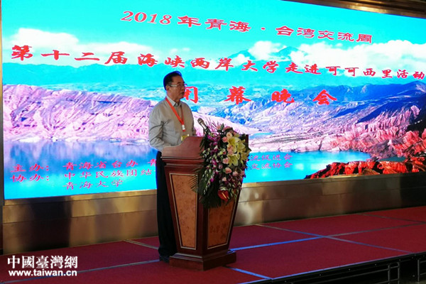 協辦單位中華民族團結協會榮譽理事長夏瀛洲致辭。(圖片來源:青海省臺辦)