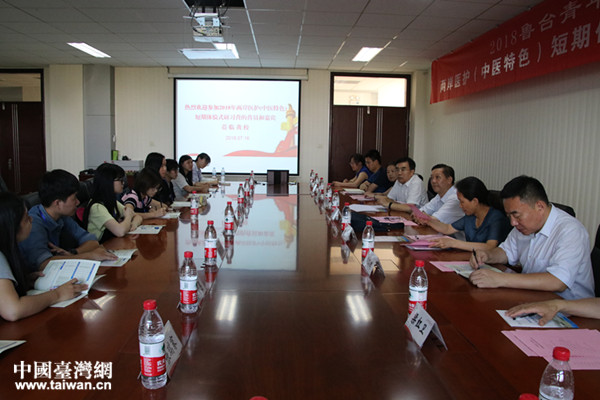 中國臺灣網7月25日濟南訊 近日,由山東中醫藥大學與山東中華文化學院聯合舉辦的“情系中華·相約齊魯—2018魯臺青年交流季”活動之2018兩岸醫護(中醫特色)短期體驗式研習營開營儀式在山東中醫藥大學舉行。山東省臺辦副主任張民忠、山東中華文化學院副院長尹曉民等相關同志出席儀式。