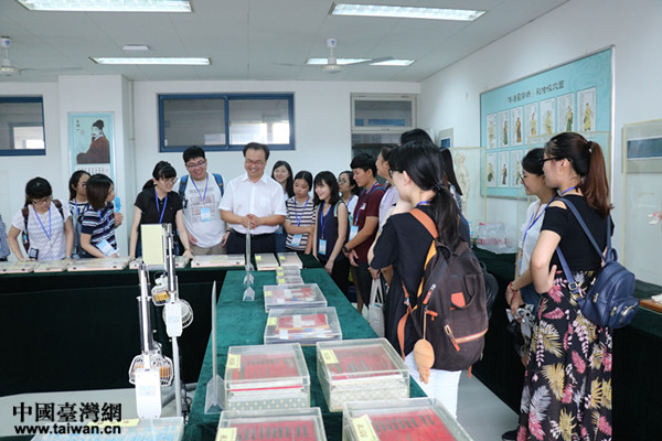 7月17日,參加研習營的同學們先后參觀了山東中醫藥大學圖書館古籍特藏部、山東省中醫藥博物館,到學校實驗中心觀摩了藥用植物標本、針灸器具展示等。通過參觀,來自臺灣的同學們紛紛表示開闊了視野,增強了對中醫藥傳統文化的感性認識,深刻感受到了中醫文化的博大精深。接下來,學生們還將通過聆聽《中醫文化和人文關懷》、《中醫護理實訓(耳穴壓豆)》、《老年人居喪風險研究》等方面的講座,并安排了山東中醫藥大學11名同學與來自臺灣的11名同學“一對一”結對學習交流進一步加深對中醫文化和中醫特色護理的感受和認識,和兩岸醫護教學的特點。